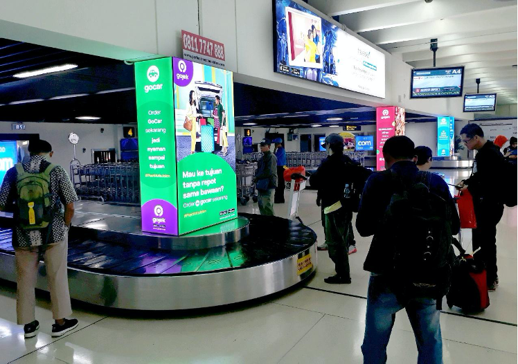 Supported by double-sided advertising displays and maximum lighting, giving passengers a memorable advertising experience right while they are queuing their luggage after arrival. Promotional advertising messages from Gojek also arrived optimally and triggered further action by consumers to immediately place orders on the Gojek online application.