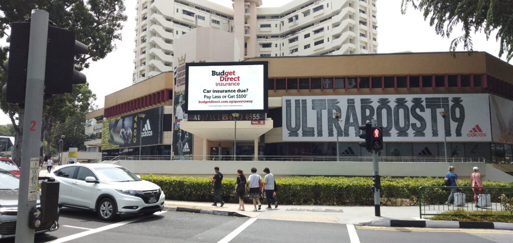 The large digital billboard at Queensway Shopping Centre is strategically located at Alexandra cross-junction to provide 100% viewpoint to drivers and motorists alike as it is fully exposed to moving vehicles facing the 3-direction along Alexandra Rd, adjacent to Jln Bukit Merah.