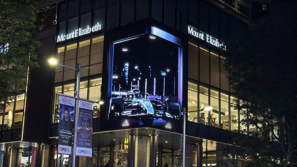 In 2025, three global brands — Adidas, MasterCard, and Groq, brought that spirit to the heart of the city. Extending their Formula 1 partnerships beyond the paddock, the brands activated campaigns on The Heeren LED screen, one of Orchard Road’s most visible digital landmarks. Their approach reflects a growing trend among leading advertisers to use Digital Out-of-Home (DOOH) media to translate sponsorship prestige into real-world engagement and visibility.