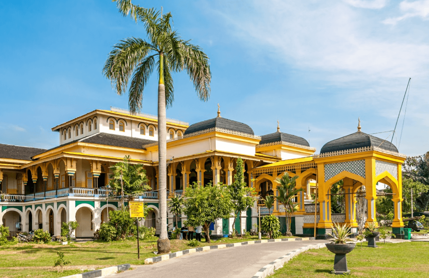 One of Indonesia’s most gorgeous historic palaces, the two-story and 30-room Istana Maimun or Maimoon Palace in downtown Medan, is the royal house for the Sultanate of Deli. Built in the late 1800s, the palace features Malay, Indian, Islamic, and other influences.