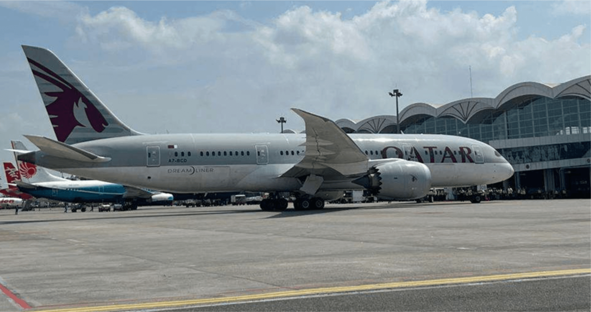 Qatar Airways, Boeing 787 Dreamliner QR 966 landing on Kualanamu International Airport— Medan, Indonesia
