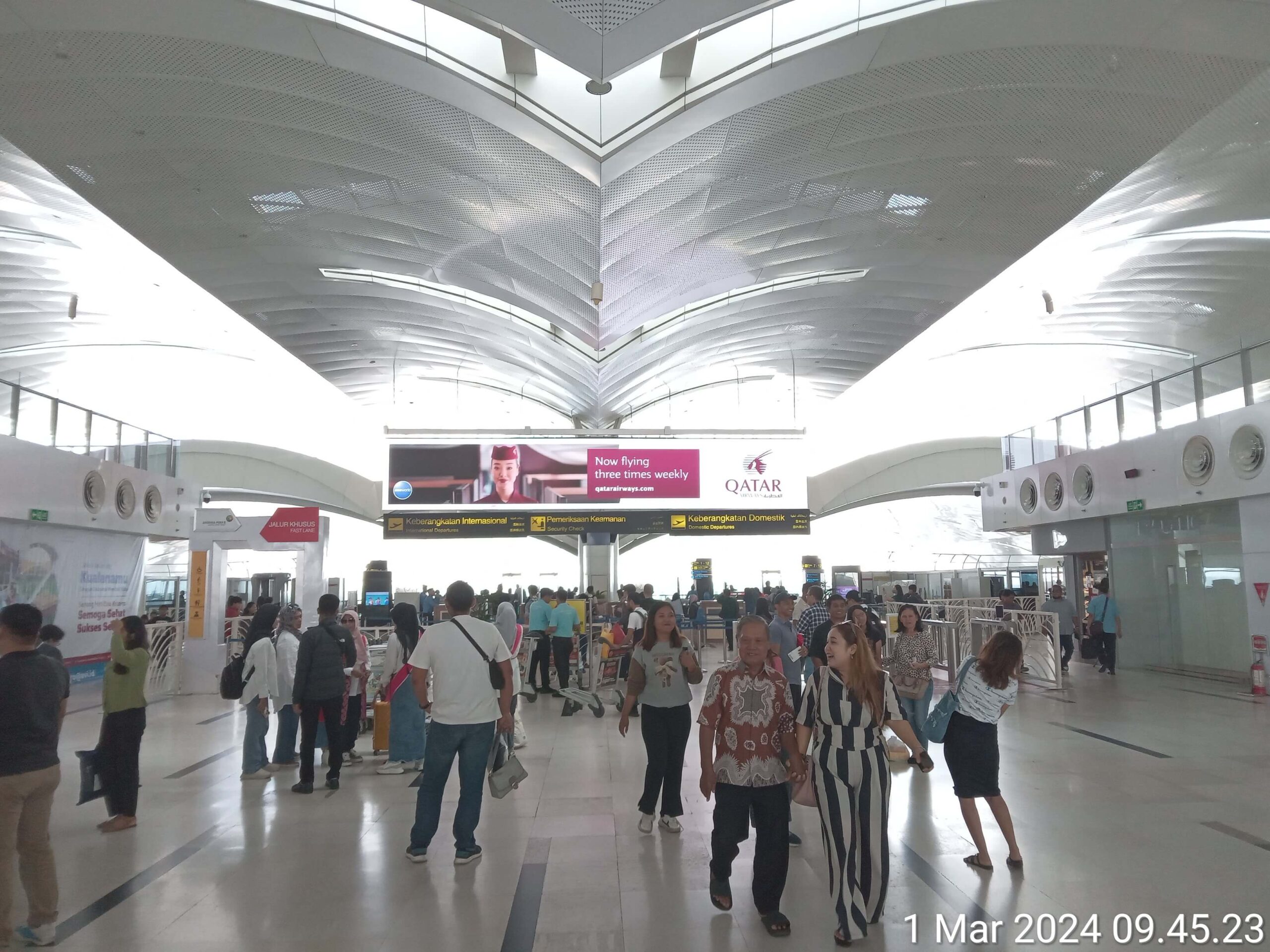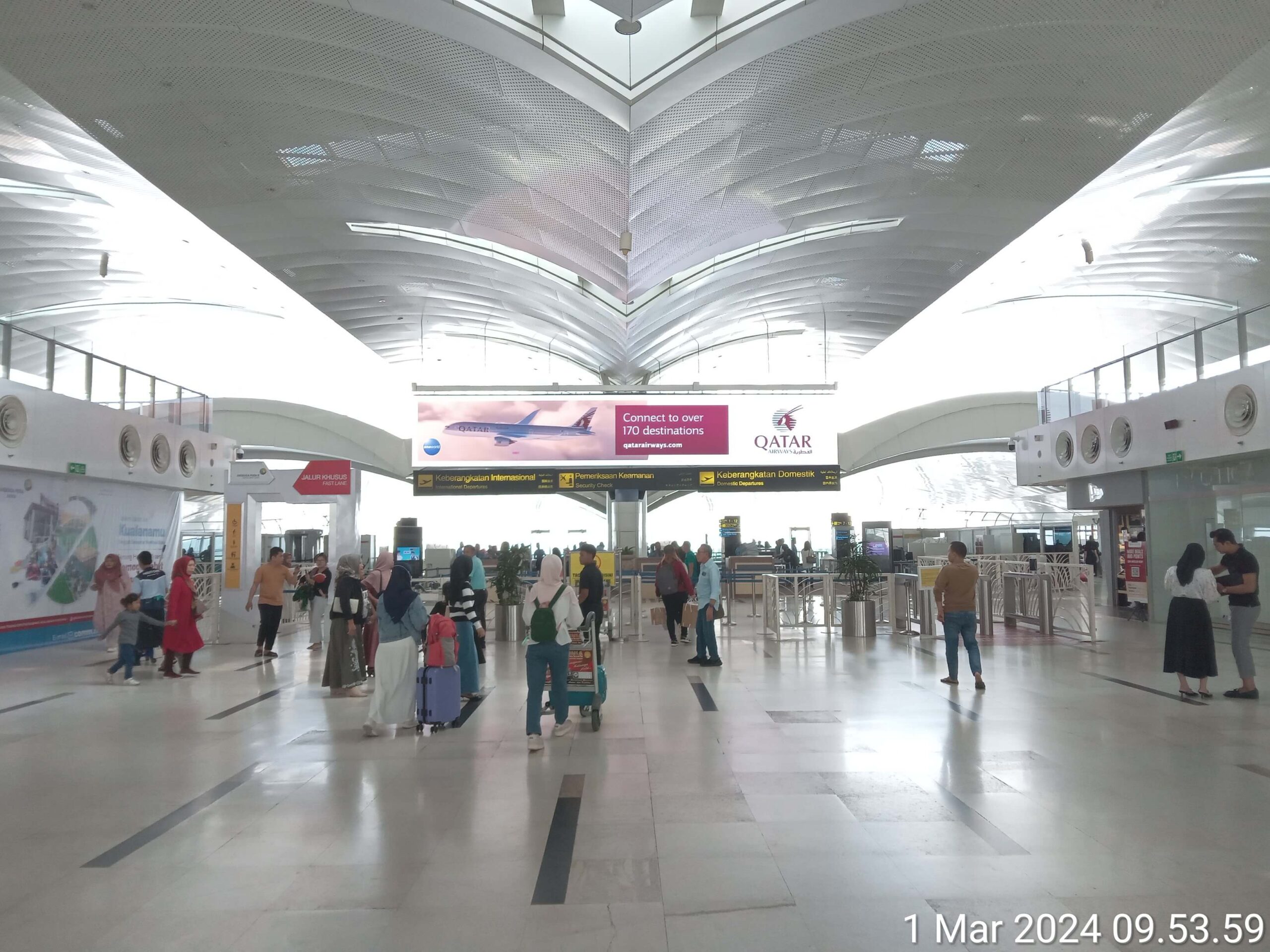 Giant LED at the departure Departure Boarding checkpoint, Kualanamu International Airport, Medan, Indonesia