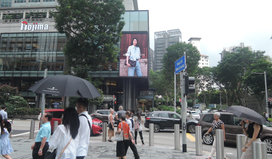 The Heeren DOOH is placed at a prime location right in the middle of Somerset and Orchard MRT Stations, a stretch where many choose to walk, shop, and dine instead of taking the train. At the busiest intersection of Orchard Road and Cairnhill Road, The Heeren 3D screen’s prominent position in a vibrant location ensures that it captures the gaze of a diverse audience, drawing fashion enthusiasts, shoppers, and passers-by alike.